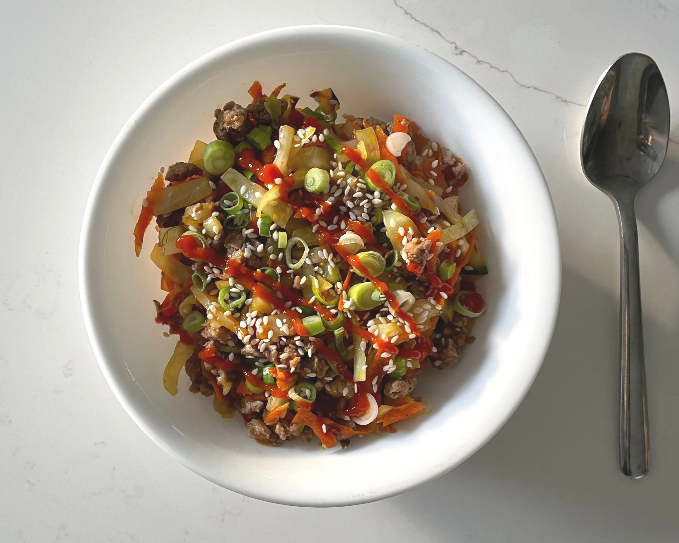 3.Add ground pork back to pan. Add remaining sauce ingredients (soy sauce, sesame oil, ginger, garlic, honey) and cook for another 3-5 minutes, until cabbage is tender.